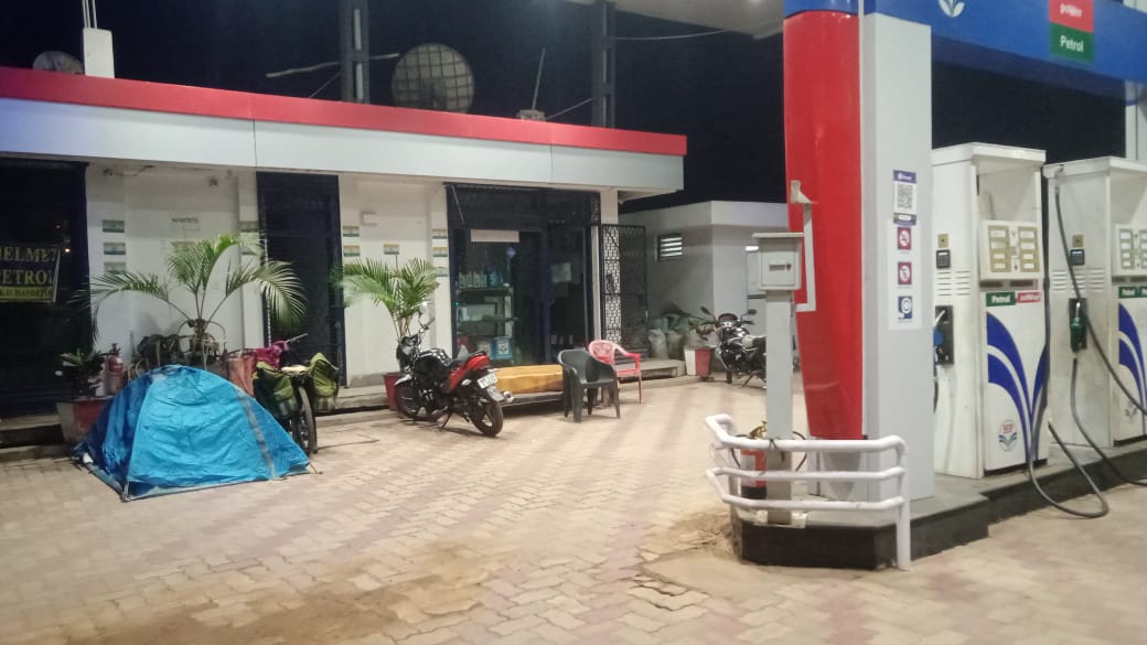 সেদিন সন্ধ্যা হয়ে যাবার পরেও সাইকেল চালাচ্ছিলাম। বুঝে উঠতে পারছিলাম না, কোথায় থাকবো। তখন আচমকা মনে এলো, ফিলিং স্টেশনে তাবু করতে পারি। হাইওয়েতে এটা সবসময়েই পাওয়া সম্ভব। ভাবনাটা আসার প্রায় ১০ মিনিট পর আমার সামনে আবির্ভুত হলো, বালাজি ফিলিং স্টেশন। আমি যতটা জড়তা নিয়ে জিগ্যেস করলাম, যে আমি আজ রাতে ওই প্রাঙ্গনে তাবু ফেলতে পারবো কিনা, ততটাই সহজভাবে ভাইটা বলে দিলেন, হ্যা, নিশ্চই! আমি ভীষণ খুশি হয়ে গেলাম। আমার বাড়িগুলোতে কল দিলাম। ওই ঠান্ডার মাঝেই, ঠান্ডা পানি দিয়ে গোসল করলাম। সে, ঠান্ডা যতই হোক, আর গোসলের ব্যাবস্থা যেমনই হোক, রাইড শেষে গোসল না করলে আমার ঘুম হয়না সেরাতে! আর, বালাজি ফিলিং এর গোসল করার জায়গাটাও ছিলো দুর্দান্ত। চনমনে মন নিয়ে হাটতে হাটতে কাছের একটা ধাবাতে গেলাম আমি, ওখানে গিয়ে পেট ভরে ভাত খেলাম! সবজি ভাতের থালি, আর পাপড়। অযথাই অনেকক্ষণ বসে ছিলাম, খাওয়া শেষে মিস্টিও খেয়েছিয়াম। রসগোল্লা। যতটা আশা করেছিলাম, তারচেয়ে মজাই ছিলো! কিছুক্ষণ বসে বসে টিভিতে চলতে থাকা সিনেমাও দেখতে লাগলাম!