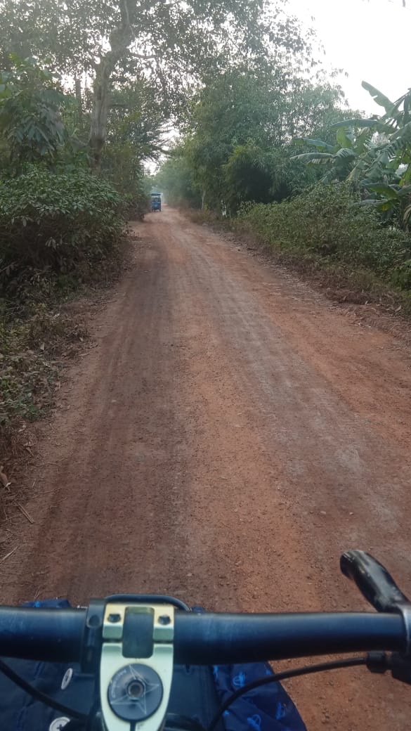 কলকাতা ছেড়ে আলমপুরের কাছে গিয়ে ন্যাশনাল হাইওয়ে ১৬ তে উঠেছিলাম। তখনও জানতাম না, ১৬’র সাথে আমার লম্বা প্রেম কাহিনী অপেক্ষমান! প্রায় ৬০ কিলোমিটার দক্ষিন-পশ্চিমে গিয়ে, হাইওয়ের প্যারালাল একটা পথ ধরি, যেটা ছিলো মোস্টলি মেঠোপথ। মাঝে একটা খাল বয়ে গেছে একেবেকে, তার দুইপাশ দিয়ে দুইটি পথ। আমি খালটাকে হাতের বায়ে রেখে চালানো শুরু করলাম। সেদিন সকালে এক ফলের দোকান থেকে এক প্যাকেট খেজুর, একটা বড় আমসত্বের টুকরো, আর ৩০০ গ্রাম চেরী ফল কিনে নিয়েছিলাম। কলকাতা থেকে নিয়েছিলাম এক বয়াম ড্রাই ফ্রুটস মিক্স। ইচ্ছা- এবার যত কম সম্ভব টাকা খরচ করে, এনার্জি ব্রেশী প্রিজার্ভ করা। তো, তখন পর্যন্ত, আমি সেদিন কোনো হোটেল থেকে কুকড ফুড খাইনি। মাথার মধ্যে চিন্তাটা এমনঃ আমি যত বেশী সম্ভব টাকা বাচাবো। ফর ব্যাক হোম, আমি একভাবে থাকলেই হলো। যত কম সম্ভব, যত কম সম্ভব।